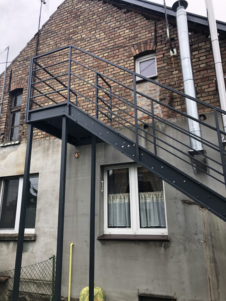 W jednej z naszych ostatnich realizacji w Poznaniu wykonaliśmy zewnętrzne schody stalowe, które stanowią funkcjonalne i estetyczne dojście na piętro budynku mieszkalnego. To konstrukcja zaprojektowana z myślą o trwałości, bezpieczeństwie i nowoczesnym wyglądzie.