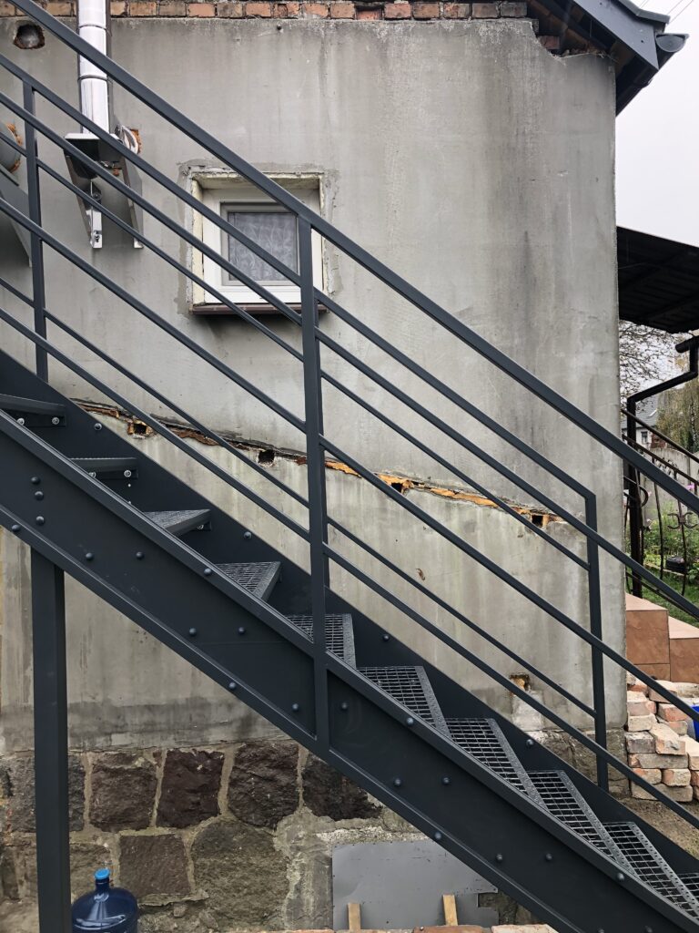 Schody zostały wykonane z malowanej proszkowo stali konstrukcyjnej, odpornej na warunki atmosferyczne.